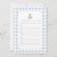 Invite friends and family to participate in a game of 'baby word scramble' with this elegant blue gingham teddy bear baby shower game card.