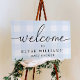 This welcome sign features a timeless gingham design with a modern calligraphy welcome heading. The sign can be customised to suit any event.