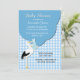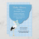 Blue Gingham with Stork Baby Shower Invitation
