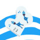 Cute blue isolated giraffe and hearts on light blue background