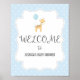 Poster print for welcome sign with giraffe design and blue polka dot background.