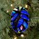 Bright blue stained glass creates the pattern for this vibrant ornament. Perfect for hanging in windows or on a Christmas tree.