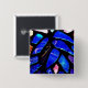 Bright blue stained glass creates the pattern for this vibrant piece of flair.