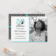 A chic, elegant, 50th birthday photo invitation you can personalise and send out for your fiftieth birthday party celebration. The words "50 and Fabulous" in black and blue glitter are set using modern typography. Simply add your photo. There's a black and white geometric diamond pattern on the back of the card with blue glitter ribbons. If you need any help or matching products, please contact us through our store.
