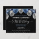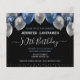 Elegant faux silver and blue glitter balloons on the top border. All text is adjustable and easy to change for your own party needs. Great elegant save the date birthday party template design. any year, age can be changed. Elegant modern stylish typography