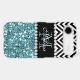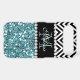 GIRLY LIGHT BLUE GLITTER (PRINTED EFFECT) WITH BLACK AND WHITE CHEVRON PATTERN, MONOGRAMMED WITH YOUR NAME, YOUR INITIAL OR MONOGRAM ON A BLACK STRIPE OR BAND WITH A BORDER OF PRINTED WHITE DIAMONDS. TRENDY, CHIC COOL CUTE DESIGN FOR HER, THE TRENDSETTER, THE FASHIONISTA