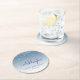 These chic 18th birthday party paper coasters feature a sparkly blue faux glitter drip border and blue ombre background. Personalise them with the guest of honour's name in blue handwriting script, with her birthday and date below in sans serif font.