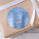 Personalized elegant and girly stickers with blue faux glitter dripping down a rose gold faux brushed metallic background. Personalize with your name in a pretty trendy white script with swashes.