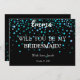 Blue Glitter Minimal Script Bridesmaid Proposal Invitation