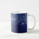 A blue background. The blue colour is uneven. Decorted with faux glitter dust. Personalise and add a name. The first name is written with a modern hand lettered style script with swashes.
