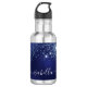 A blue background. The blue colour is uneven. Decorted with faux glitter dust. Personalise and add a name. The first name is written with a modern hand lettered style script with swashes.