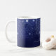 A blue background. The blue colour is uneven. Decorted with faux glitter dust. Personalise and add a name. The first name is written with a modern hand lettered style script with swashes.