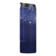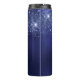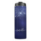 A blue background. The blue colour is uneven. Decorted with faux glitter dust. Personalise and add a name.  The first name is written with a modern hand lettered style script with swashes.