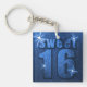 This gorgeous and stunning birthday key chain is great to give out as party favours. Or it can make a wonderful gift. The key chain is blue and in the middle has the words "sweet 16" in glittery shiny lettering. There are sparkle rays on the in the words to give it the illusion that it's lavish - it really gives it a nice pop.