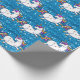 A colourful, sparkly unicorn wrapping paper with a pattern of cute little chubby unicorns with rainbow coloured hair, mane and tail, gold stars on their bodies and golden hooves. They're dancing over a glittering blue background of sparkling glitter. This blue unicorn wrap would be ideal for a children's birthday party gift, for unicorn crafts, and more.