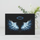 Blue Glowing Angel Wings on black background Card
