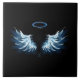 Blue Glowing Angel Wings on black background Ceramic Tile