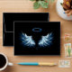 Light, artistic, blue angel wings on a black background. Angel wings.
