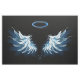 Blue Glowing Angel Wings on black background Fabric