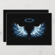 Blue Glowing Angel Wings on black background Invitation