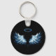 Blue Glowing Angel Wings on black background Key Ring