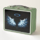 Blue Glowing Angel Wings on black background Metal Lunch Box
