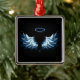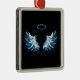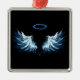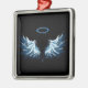 Blue Glowing Angel Wings on black background Metal Ornament