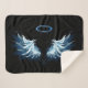 Blue Glowing Angel Wings on black background Sherpa Blanket