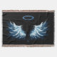 Blue Glowing Angel Wings on black background Throw Blanket