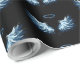 Blue Glowing Angel Wings on black background Wrapping Paper