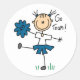 Go Team cheerleader stickers with the stick figure cheerleader in a blue uniform with pompons. You can customise these cheerleading stickers with a name or other text on the spot!
