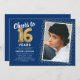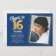 Celebrate the grand milestone of turning sixteen with our elegant birthday party invitations. With a customisable trendy blue background, a personal photo spot, and golden accents, these invitations are sure to leave a lasting impression. The gold helium balloon details add a touch of magic, while the modern 16th birthday text template is effortlessly easy to personalise. Because style has no age limit!
