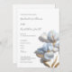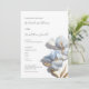 This elegant artistic minimalist wedding invitation features contemporary white 3 dimensional blue and gold flowers.