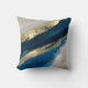 Blue Gold Abstract Brushstrokes Chic Modern Cushion