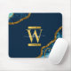 Blue & Gold Agate Geode Glitter Monogram Mouse Pad