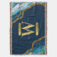 Blue & Gold Agate Geode Glitter Monogram Throw Blanket
