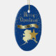 Send them something pretty from the beautiful state of Alaska! On the front of this ornament is a shiny gold silhouette image of the state, with a darker gold star imposed over it. Above the state and star image is the glittery message MERRY CHRISTMAS in script, and a banner with the text in blue ALASKA. Around it all are gold snowflakes. The images and text are placed on a deep blue background. The back of the ornament has text fields in light gold for you to customise, and a second gold star image. You may change the background colour, if you'd like, by choosing CUSTOMIZE.