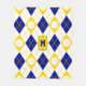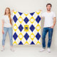 This cool basketball team colours fleece blanket features a blue, gold and white argyle plaid pattern with gold "stitching" extending diagonally across the diamond shapes and semitransparent basketballs that overlie and blend with the gold diamond shapes - customise with athlete's monogram - by katz_d_zynes