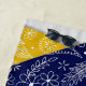 This fun volleyball themed beach towel for her features the realistic image of an abstractly oversized volleyball that has navy blue, gold and white panels - a continuous doodle pattern of paisleys, flowers and feathers in white covers the volleyball's blue and gold panels - personalise with the athlete's name and monogram, varsity letter or jersey number - by katz_d_zynes