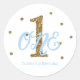 Blue & Gold Boys ONE 1st Birthday Party Favour Classic Round Sticker