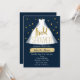 Blue & Gold Bridal Shower Wedding Dress & Confetti Invitation
