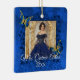 Blue and gold butterflies personalised / custom Christmas ornament keepsake is versatile for royal blue or navy blue Quinceanera themes. Blue butterflies can easily be resized and repositioned on commemorative photo ornaments. A versatile gift for Christmas or a 15th birthday.