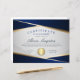 Blue and gold gradient professional certificate of achievement award includes gold and blue medal.