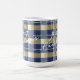 If you are wondering what colour combinations to pick for your Christmas decor and gift wrap supplies this year, I've created collections of coordinating patterns to make life just a bit easier. This coffee mug features a modern, cosy-looking plaid design, shown here in a striking blue and gold colour palette. Add a message and name using the provided template. Search ID1009 to see other products and patterns in this colour scheme.