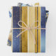 If you are wondering what colour combinations to pick for your Christmas decor and gift wrap supplies this year, I've created collections of coordinating patterns to make life just a bit easier. This fun grouping has a combination of bold stripes, ornaments, candy canes and geometric Christmas trees all in striking shades of blue and gold. Contact the designer to have any three patterns from our 'Blue Gold Christmas' collection placed on these wrapping paper sheets.