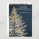 Blue Gold Christmas Tree Photo Personalized Holiday Card