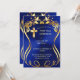 Customisable Elegant Blue and Gold with Gold Cross First Communion Invitation.