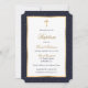 Blue Gold Cross Stars Elegant Script Baptism Invitation