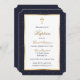 Elegant blue and gold baptism invitation featuring a starry pattern. The gold foil is only simulated in the artwork.