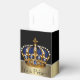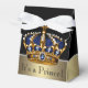 Elegant royal blue and gold prince crown baby shower favour boxes. These beautiful blue and gold prince baby shower favour boxes can be personalised with text and you can change the ribbon colour.